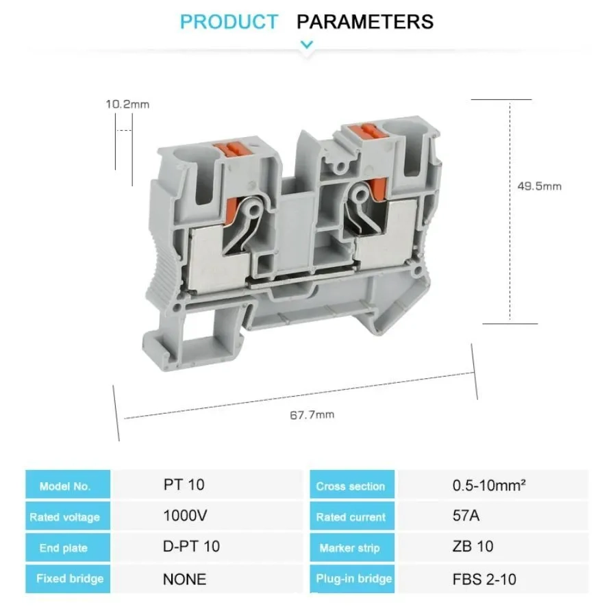 JPT10 BLUE Клемма синяя/ Сечение гибкого проводника (с наконечником): 0,5 мм2 - 10 мм2. Сечение жесткого провода: 0,5 мм2 - 16 мм2. WONKEDQ Номинальный ток нагрузки до 57А. номинальное напряжение: 1000 В. Клемма JPT 10 BLUE купить в наличии. Клемма WONKEDQ купить в наличии.