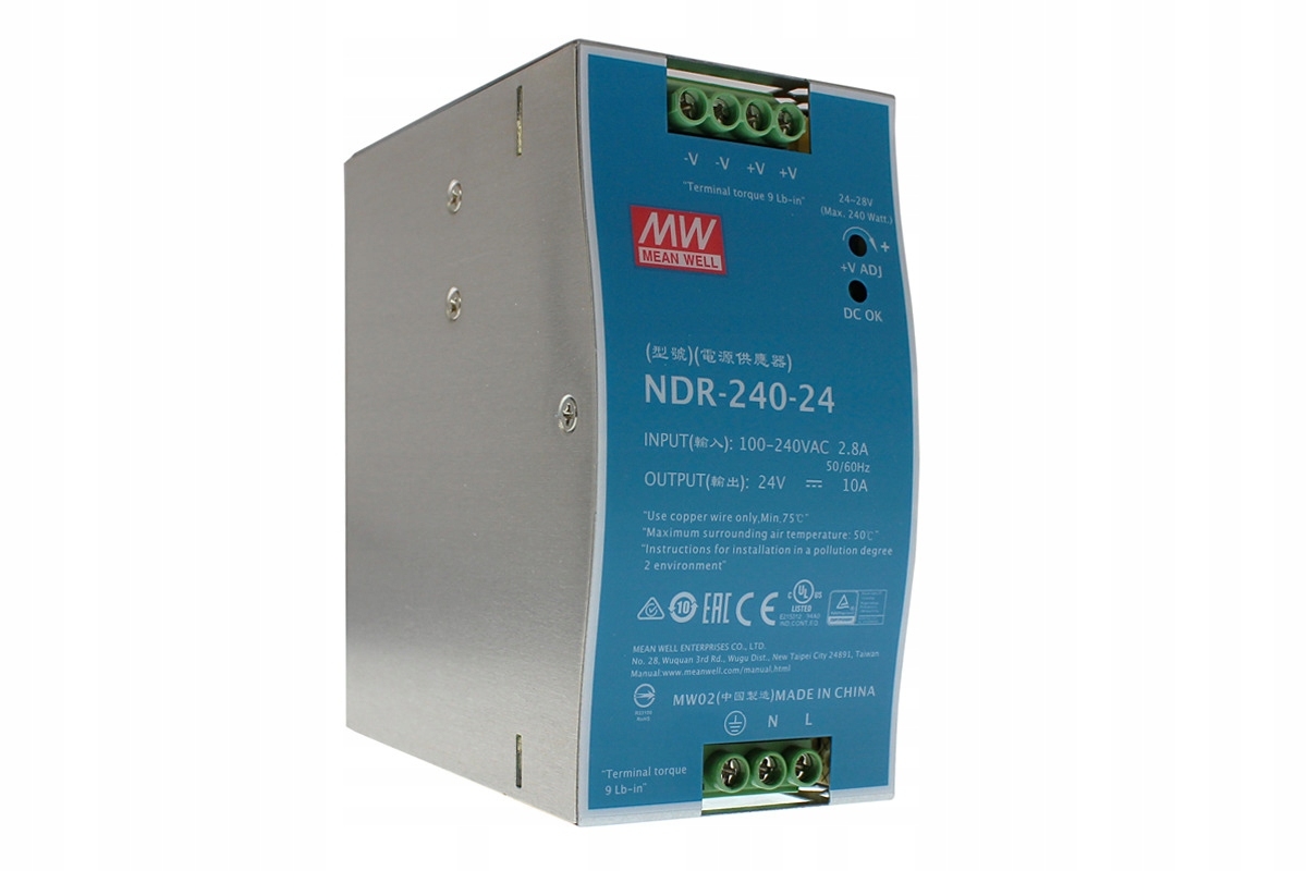 Преобразователь AC-DC на DIN-рейку, 24В, 10А, 240Вт