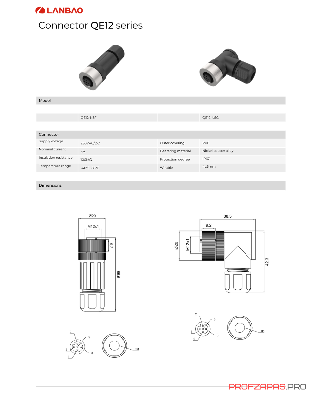 QE12-N5G — угловой разъем бренда LANBAO, предназначенный для подключения промышленных датчиков к контроллерам. Характеристики: