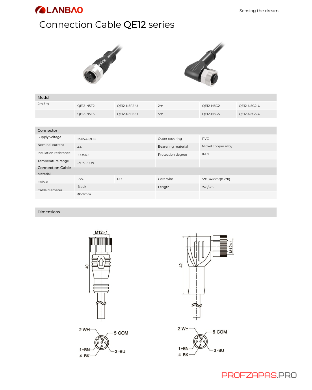 Провод для датчика QE12 N5G5 является аналогом LANBAO, Omron, Sick, Phoenix Contact.