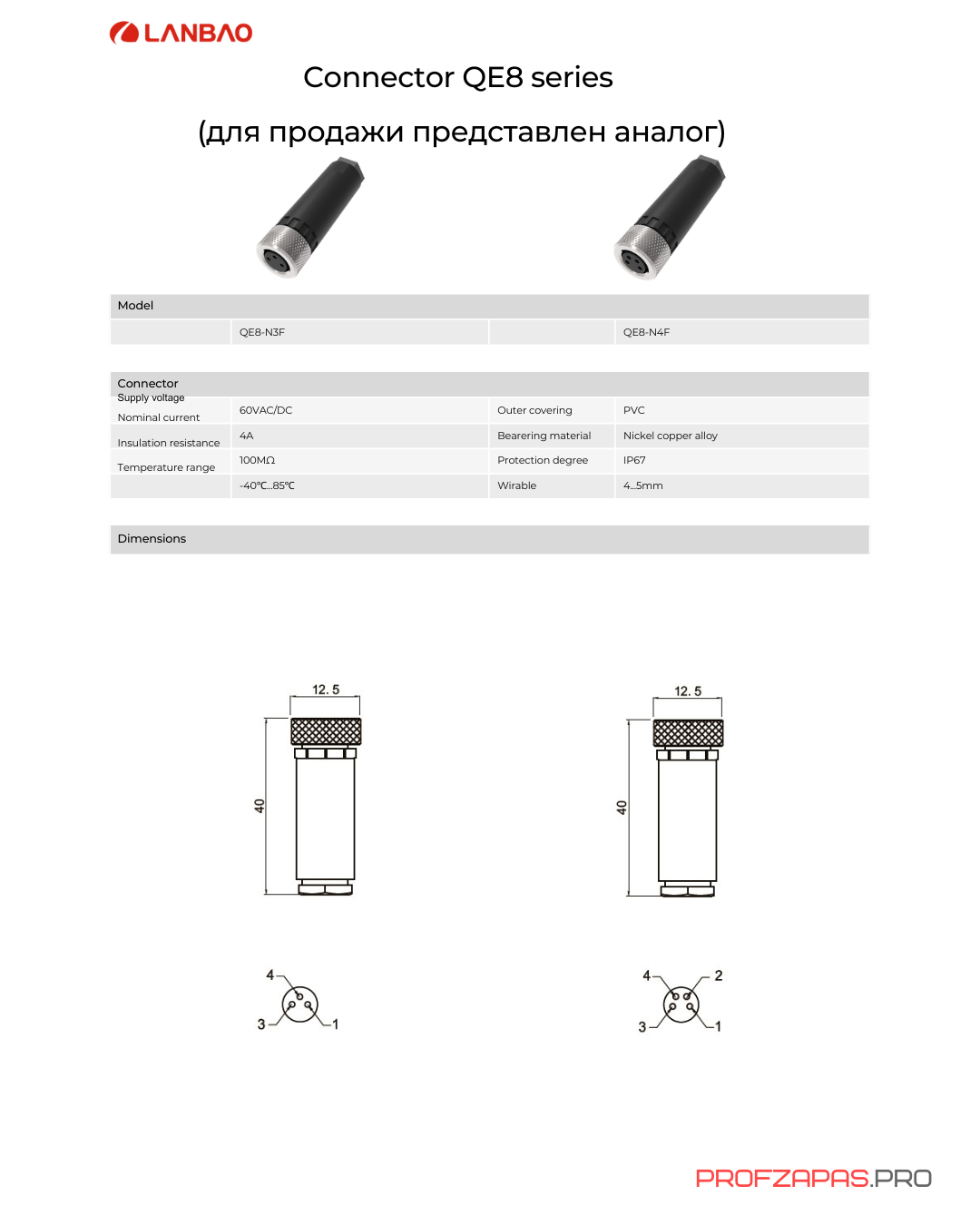 На сайте Profzapas.pro вы можете заказать разъем M8 3 pin QE8-N3F со склада с гарантией качества и быстрой доставкой. Описание приведено справочно. Характеристики модели соответствуют артикулу. Производитель оставляет за собой право вносить изменения без уведомления.