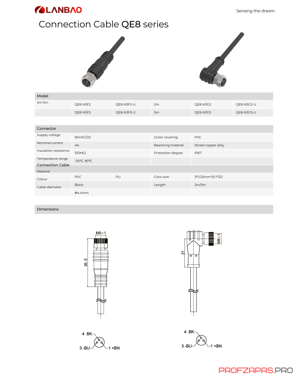 Провод для датчика QE8N3G2 является аналогом LANBAO, Omron, Sick, Phoenix Contact.