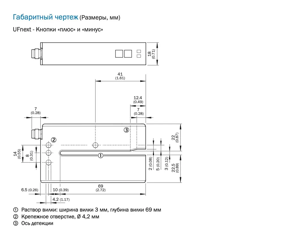 Конструкция с шириной щели 3 мм и глубиной 69 мм позволяет удобно интегрировать устройство в компактные узлы оборудования. Быстрое время отклика 250 мкс гарантирует точное позиционирование даже при высокой скорости движения ленты. Поддерживается 2-точечная настройка и динамическое обучение, что упрощает ввод в эксплуатацию и переналадку под различные форматы продукции.